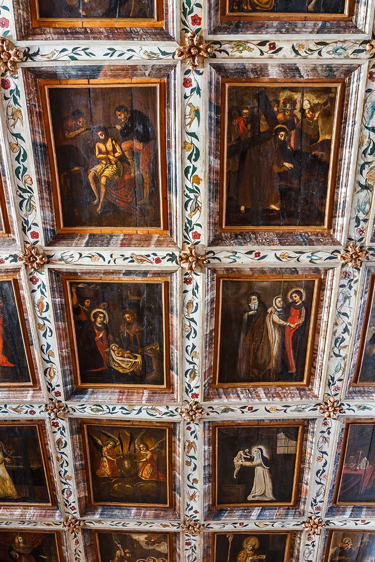 Arte sacra: Tetos e altares em talha dourada, escultura. Pintura sobre tábua. Pintura mural.