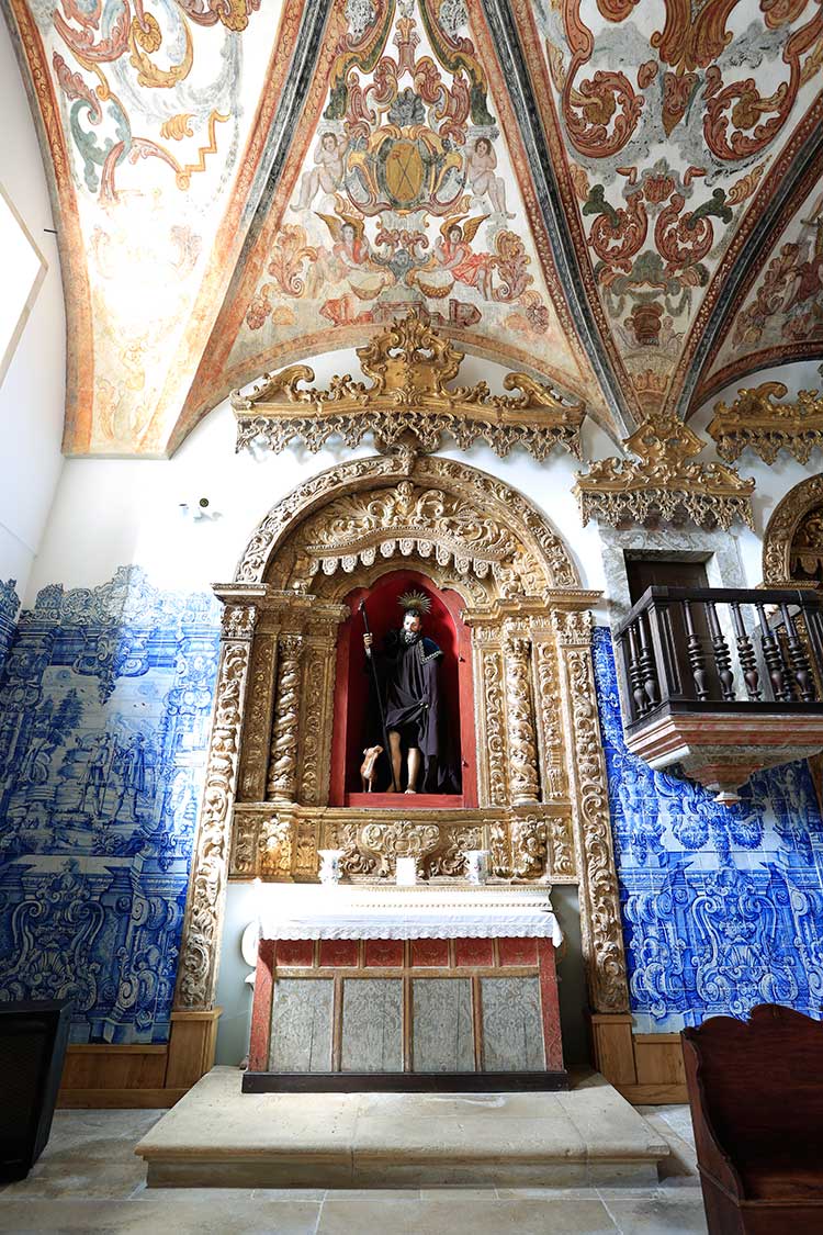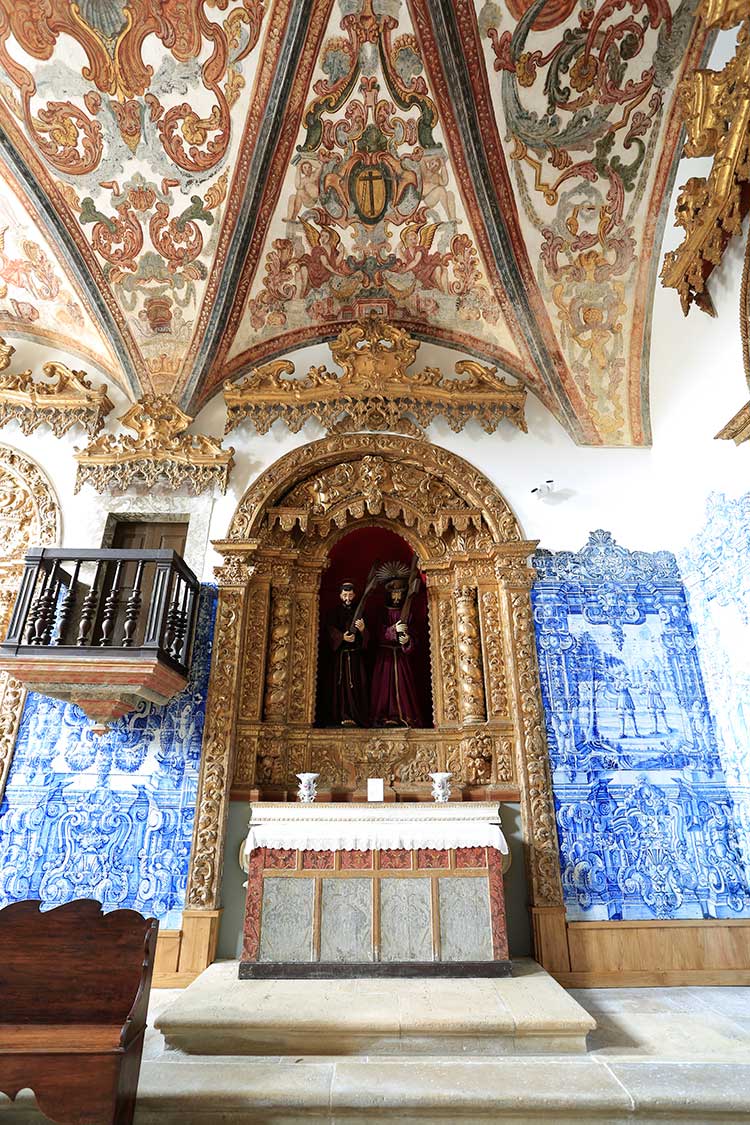 Pintura mural, Arte sacra: altares e teto em talha dourada e policromada, escultura, pintura sobre tela e tábua, azulejo.