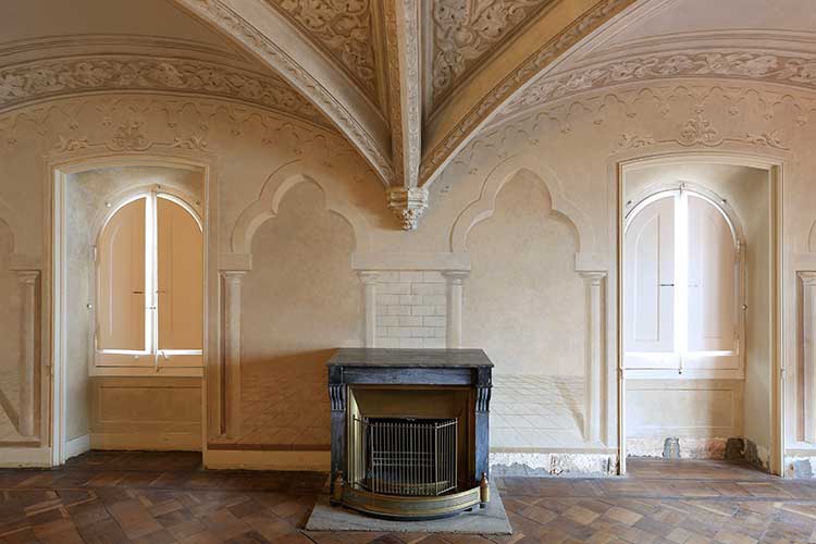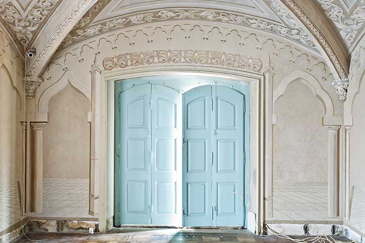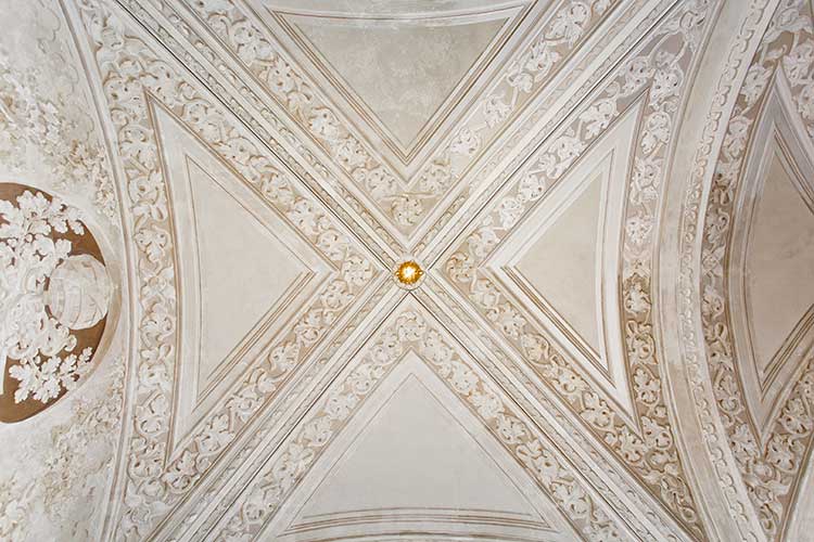 Estrutura de madeira do extradorso da abóbada. Pintura Mural.
