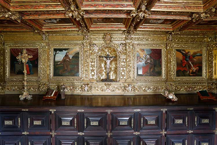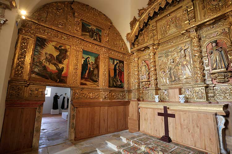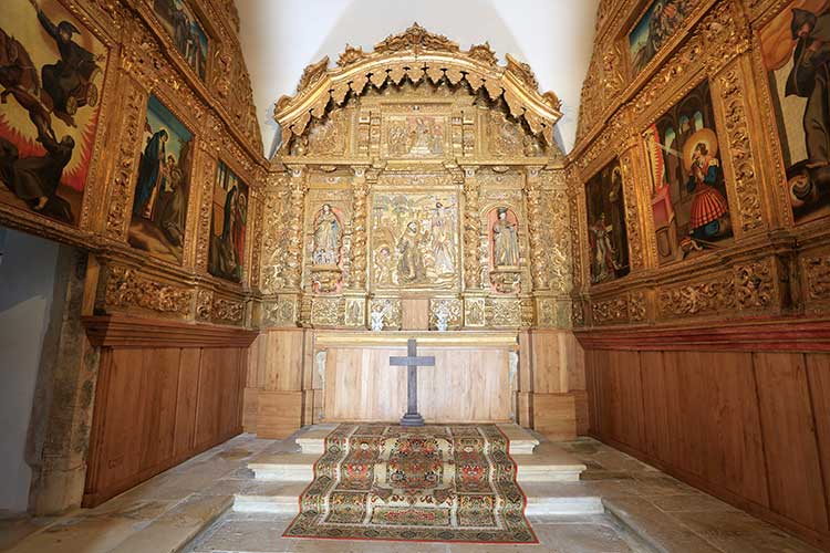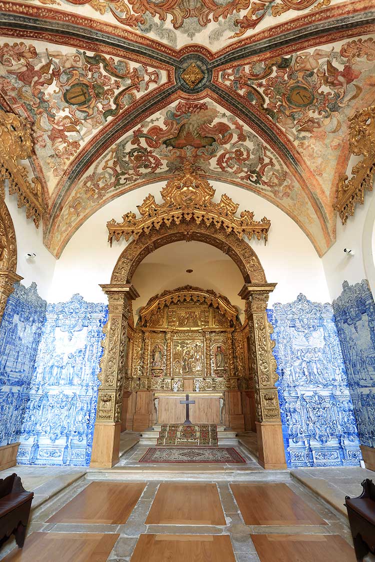 Pintura mural, Arte sacra: altares e teto em talha dourada e policromada, escultura, pintura sobre tela e tábua, azulejo.